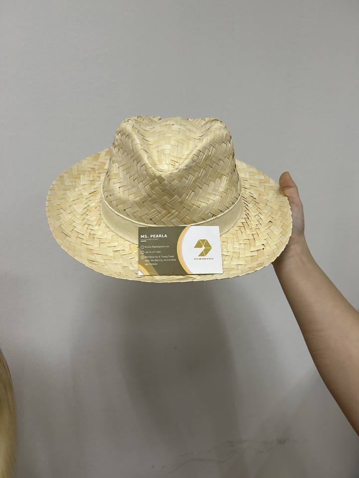 หมวกคาวบอยปีกกว้างทำด้วยมือทำจากฟางต้นปาล์มธรรมชาติสำหรับกันแดดเวียดนาม