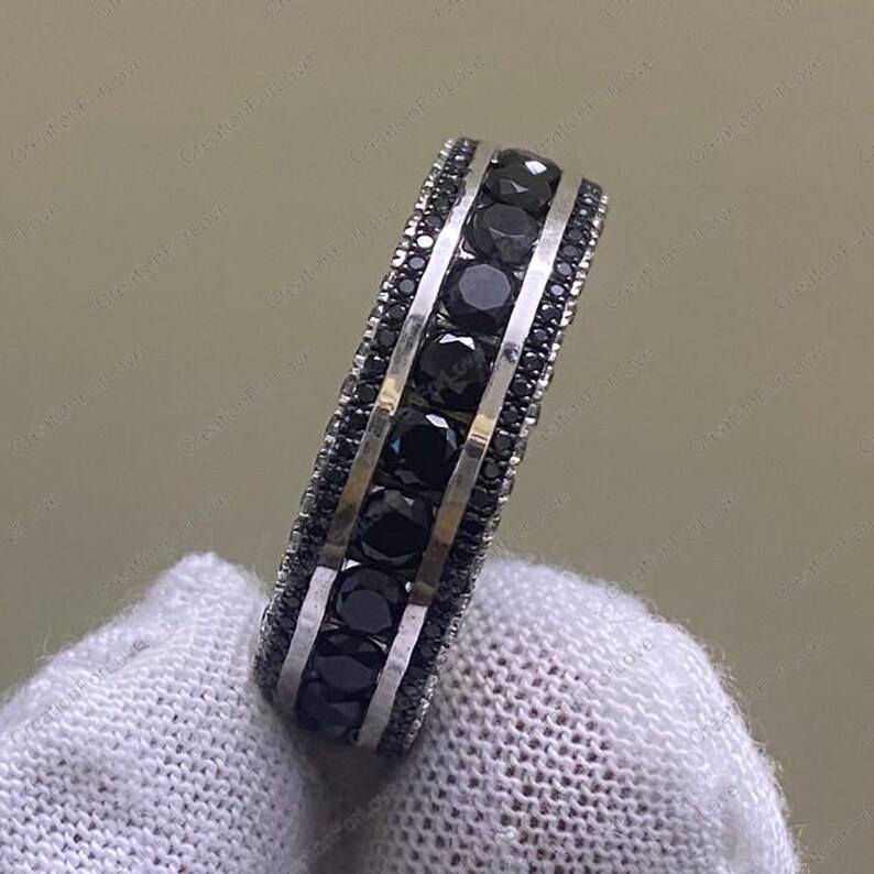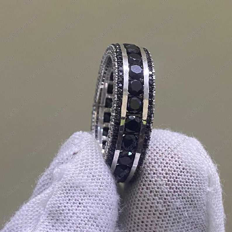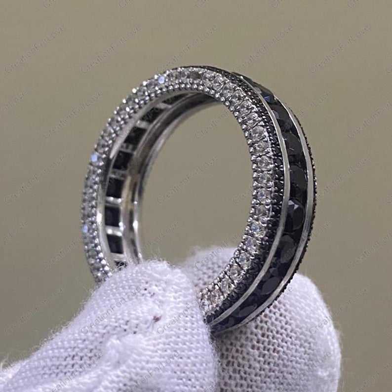 แหวนเพชรโมอิสซาไนต์แท้สีดำแบบเต็มวงสำหรับผู้หญิง เงินแท้ 925 ของแท้ ของขวัญเซอร์ไพรส์งานแต่งงานสำหรับเจ้าสาว
