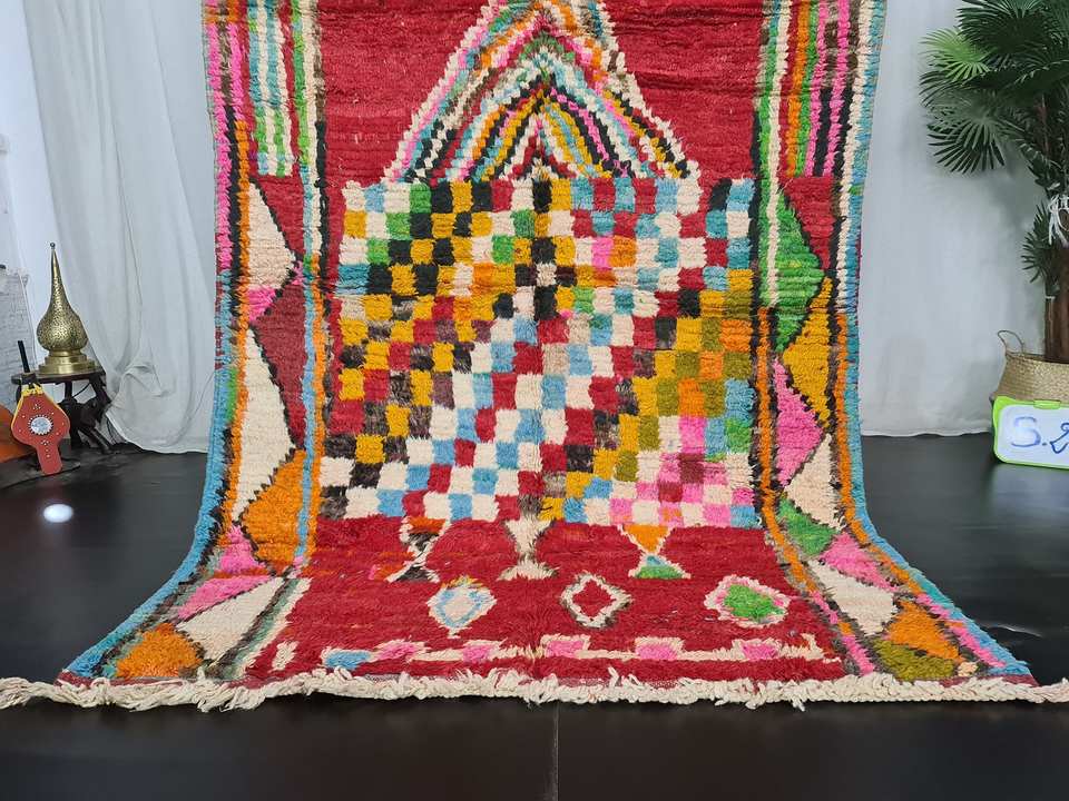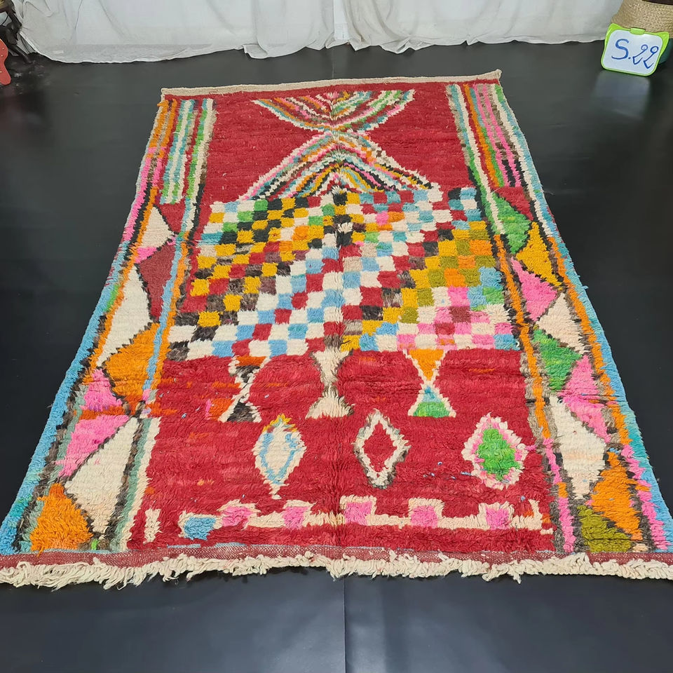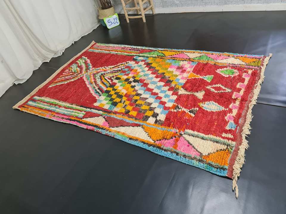 พรมลายชนเผ่าชาวโมร็อกโกแท้พรมห้องนอนสไตล์โบฮีเมียนดีไซน์แบบงานปะหลากสี