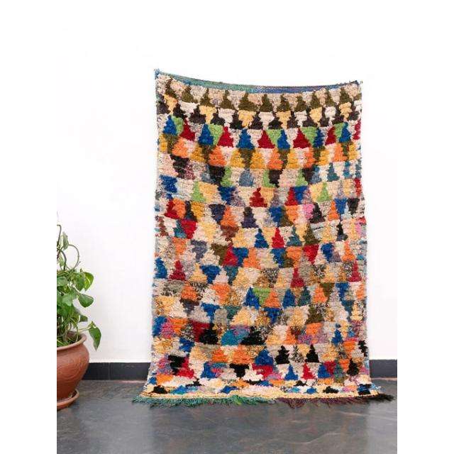 พรมบูเชอรูอิตเบอร์เบอร์โบโฮชิคสีสันสดใสสไตล์วินเทจ งานฝีมือแท้จากโมร็อกโก ของตกแต่งบ้านแบบแอตลาส