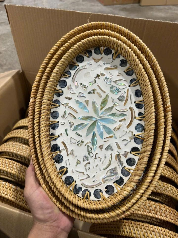 ถาดหวายประดับมุกแท้สำหรับตกแต่งโต๊ะ ใช้เสิร์ฟและจัดแสดง งานฝีมือเวียดนามแบบดั้งเดิม