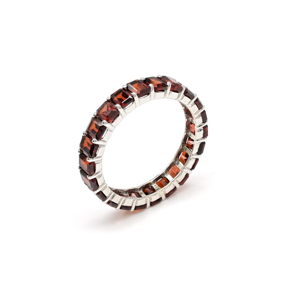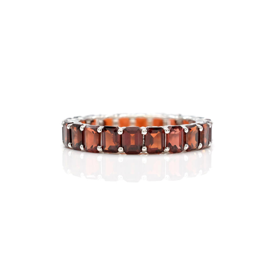 แหวนแต่งงานทองคำขาว 14k ประดับพลอยโกเมนแท้จากโมซัมบิก รูปทรงแปดเหลี่ยม ขนาด 4x3 มม. ดีไซน์แบบ Eternity Band สำหรับเจ้าสาว สามารถสวมซ้อนกับแหวนอื่นได้