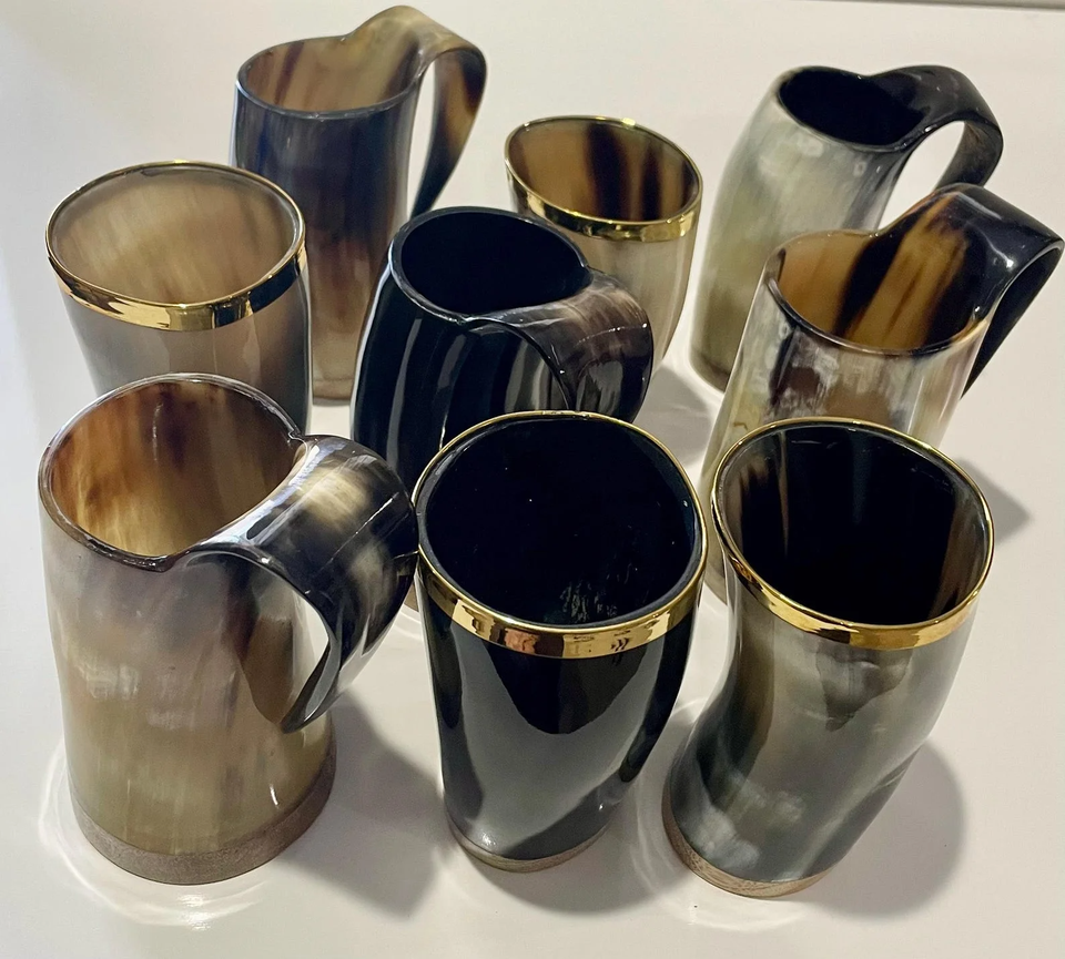 แก้วเขาสัตว์แท้ เป็นมิตรกับสิ่งแวดล้อม ทำด้วยมือ สไตล์ไวกิ้ง สำหรับดื่มเบียร์ กาแฟ หรือเครื่องดื่มอื่นๆ สไตล์ยุคกลาง