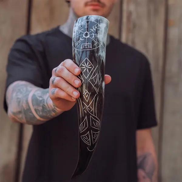 เขาแกะแท้สำหรับดื่มมีดและเอลสไตล์ไวกิ้ง ราคาประหยัด ทำด้วยมือ