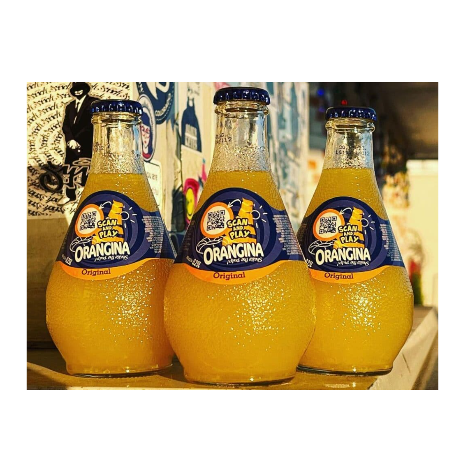 ออรันจิน่าแท้จากฝรั่งเศส สูตรดั้งเดิมตั้งแต่ปี 1936 ประกอบด้วยน้ำอัดลม น้ำผลไม้รสส้ม และส้ม