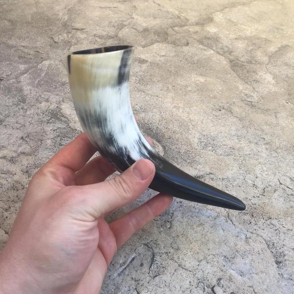 แก้วเขาสัตว์ไวกิ้งออร์แกนิคแท้พร้อมลายสลักและฐานสำหรับเบียร์/ไวน์/มี้ด/เอล - ของขวัญธุรกิจสไตล์แฮนด์เมดสุดพิเศษ