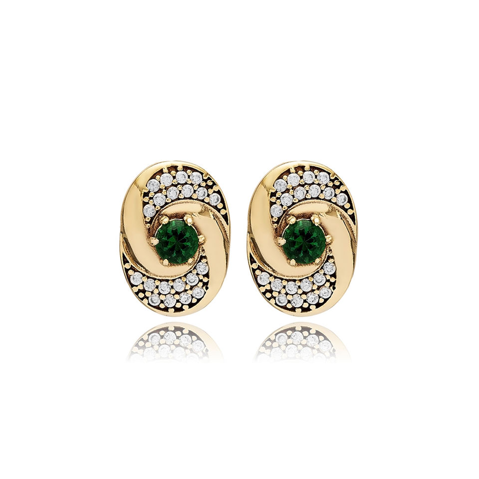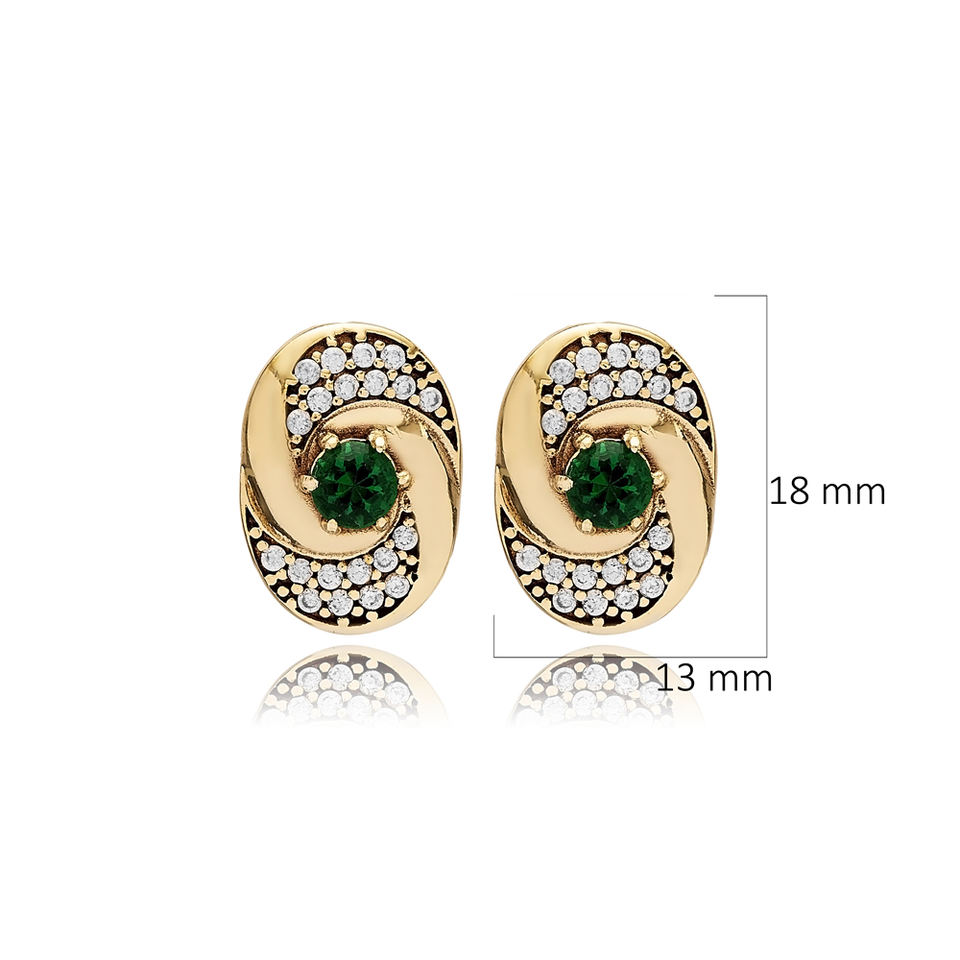 ต่างหูเม็ดกลมสีเงินแท้แบบออตโตมันมรกต CZ สตั๊ดหินอัญมณีแฮนด์เมดแบบตุรกีขายส่ง