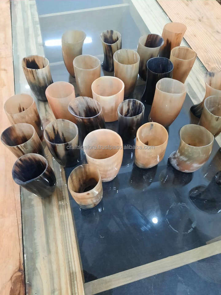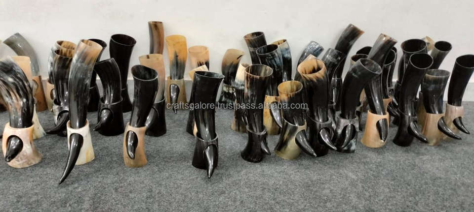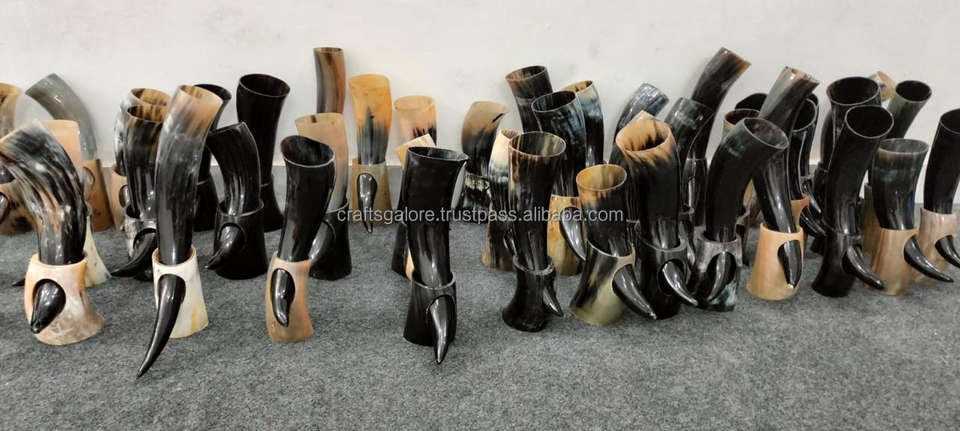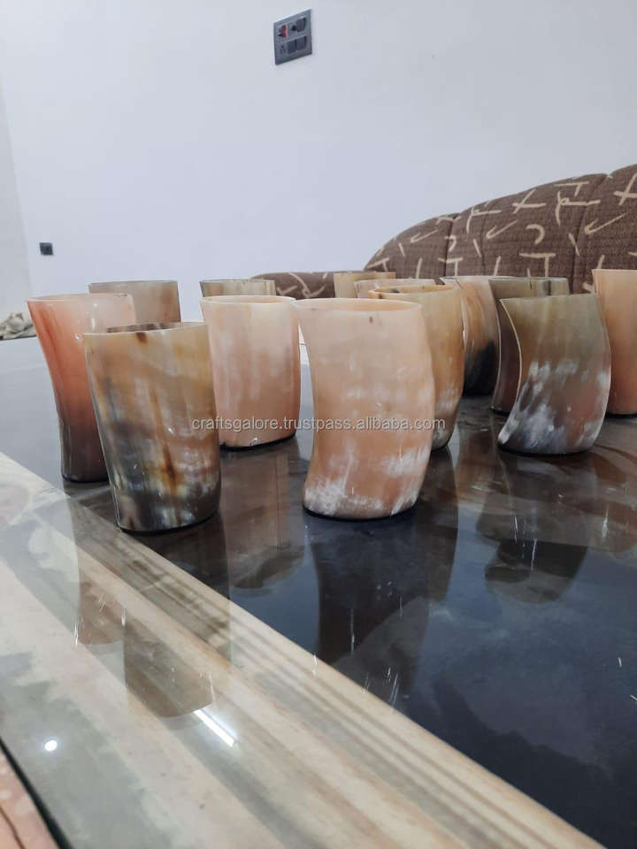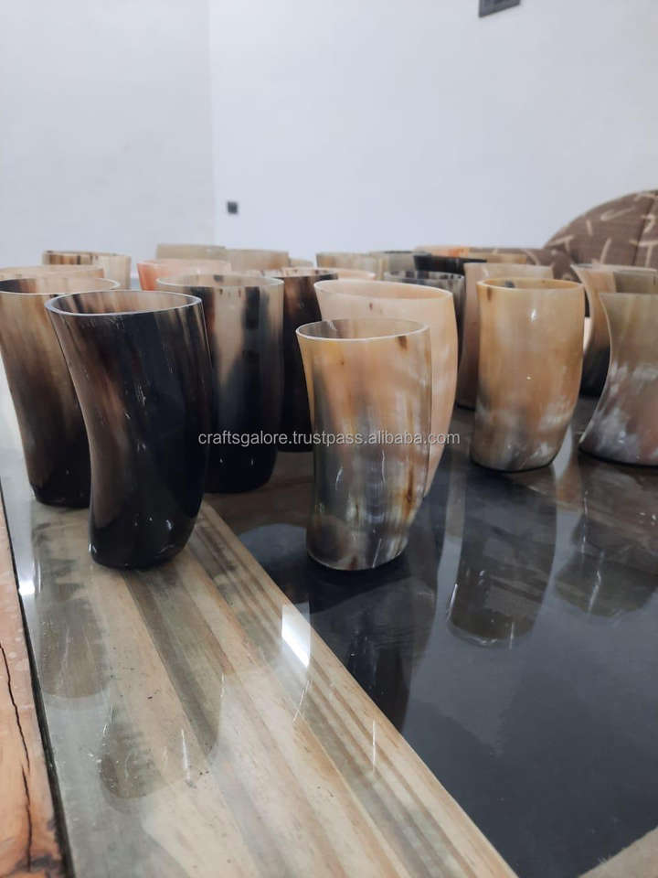 แก้วเขาสัตว์ขัดเงาแท้จากวัสดุออร์แกนิก สำหรับเบียร์ ไวน์ ของขวัญงานแต่งงานสไตล์สัตว์/ศาสนา งานฝีมือมากมายจากอินเดีย