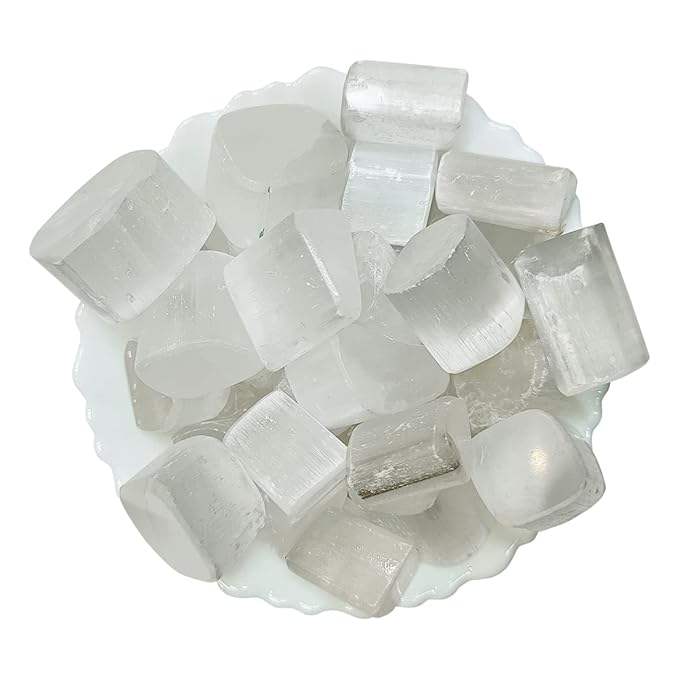 หินทัมเบิ้ลขัดเงา Selenite แท้-อัญมณีแสงสีขาวเพื่อการล้างและความสงบของออร่า