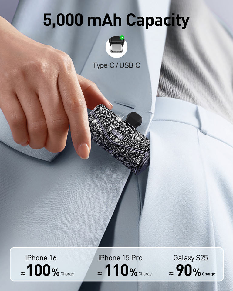 พาวเวอร์แบงค์พกพาแบบแคปซูลเพชรแท้ ประกายวิบวับ ความจุ 5000 มิลลิแอมป์ ดีไซน์หรูหรา แฟชั่น ของขวัญสำหรับสาวๆ ผู้หญิง