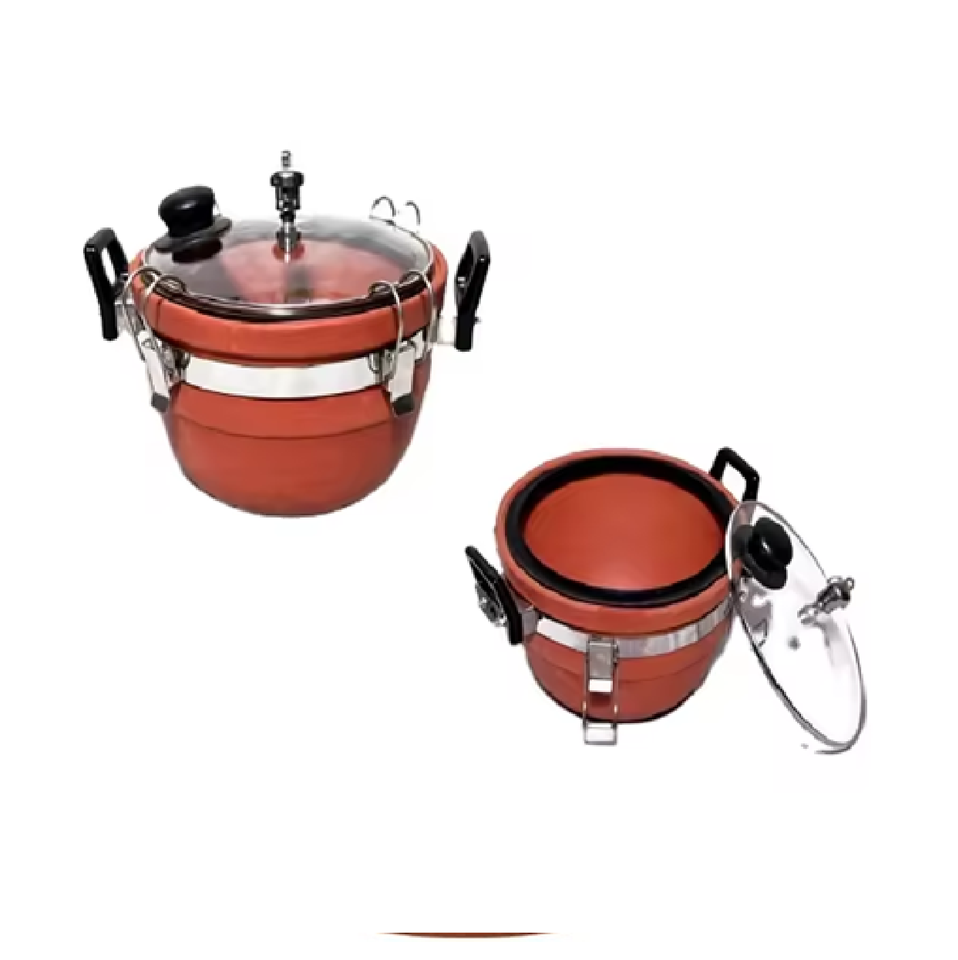 หม้ออัดแรงดันดินเผาแท้พร้อมฝาล็อคและหูจับ - หม้อดินเผาแบบดั้งเดิมสำหรับการทำอาหารที่ช้าๆ และมีรสชาติ
