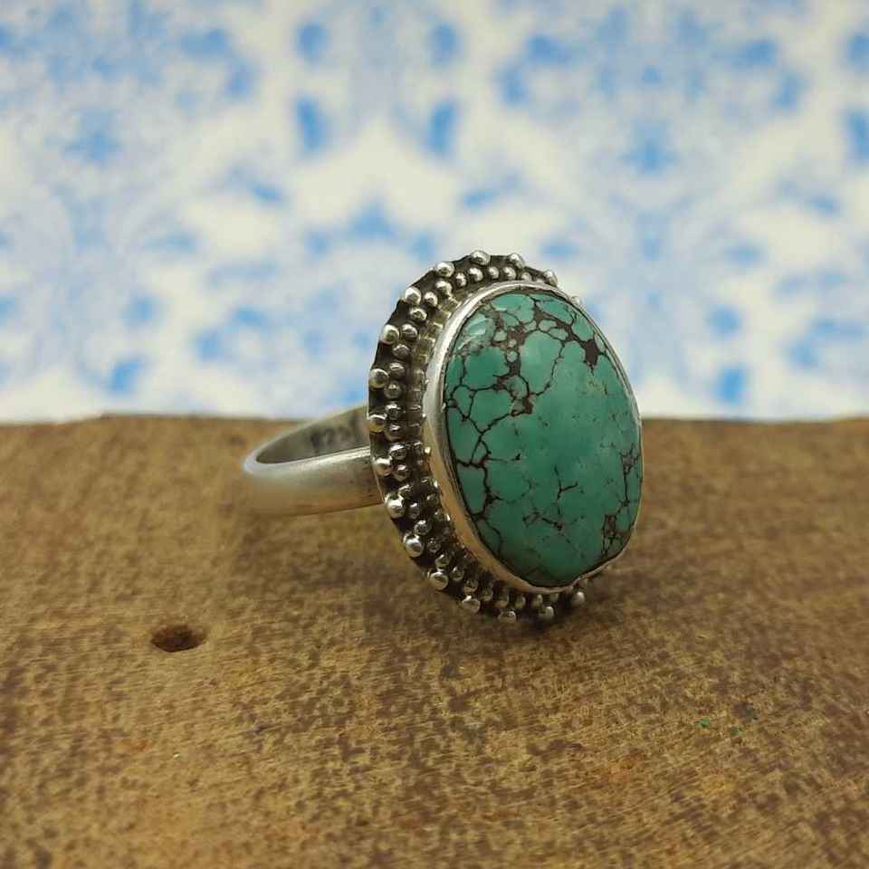 แหวนเพชรสีเทอร์ควอยซ์แท้จากธิเบตออกแบบมาทางตะวันตกเฉียงใต้แหวนเงินแท้925แท้ของขวัญเครื่องประดับ