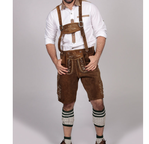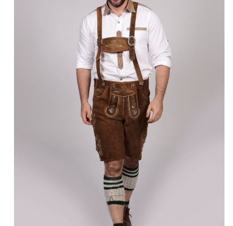 โฮสแบบสั้นสำหรับผู้ชายหนังแท้สีน้ำตาลสไตล์บาวาเรียแท้แบบดั้งเดิม