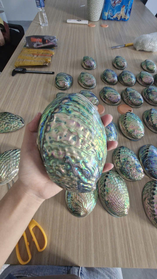 หอยเป๋าฮื้อแท้จากเวียดนามพื้นผิวมันวาวและขัดเงาอย่างสวยงามตัวเลือกที่เหมาะสำหรับการส่งออกและการตกแต่ง