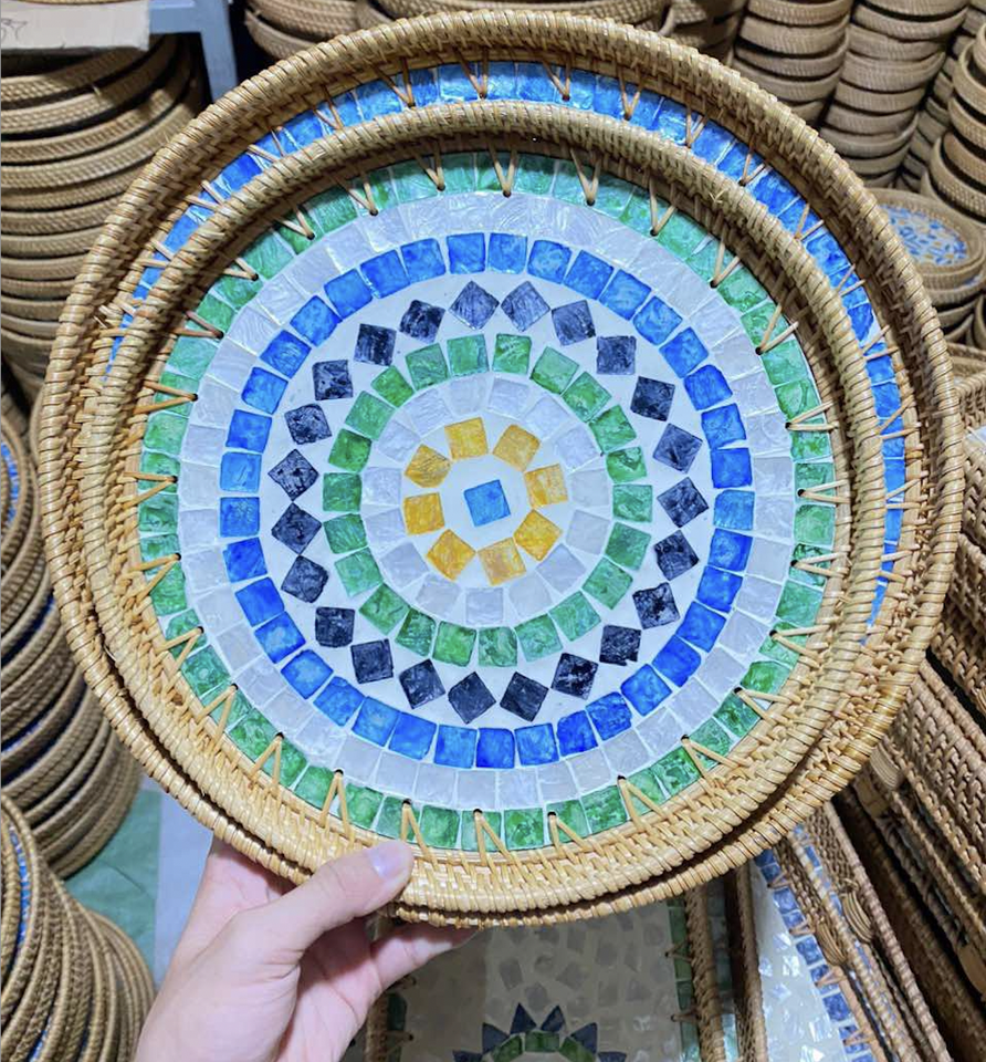 ถาดหวายสานเวียดนามแท้พร้อมที่จับด้านข้างสำหรับอาหารเครื่องดื่มชากาแฟ