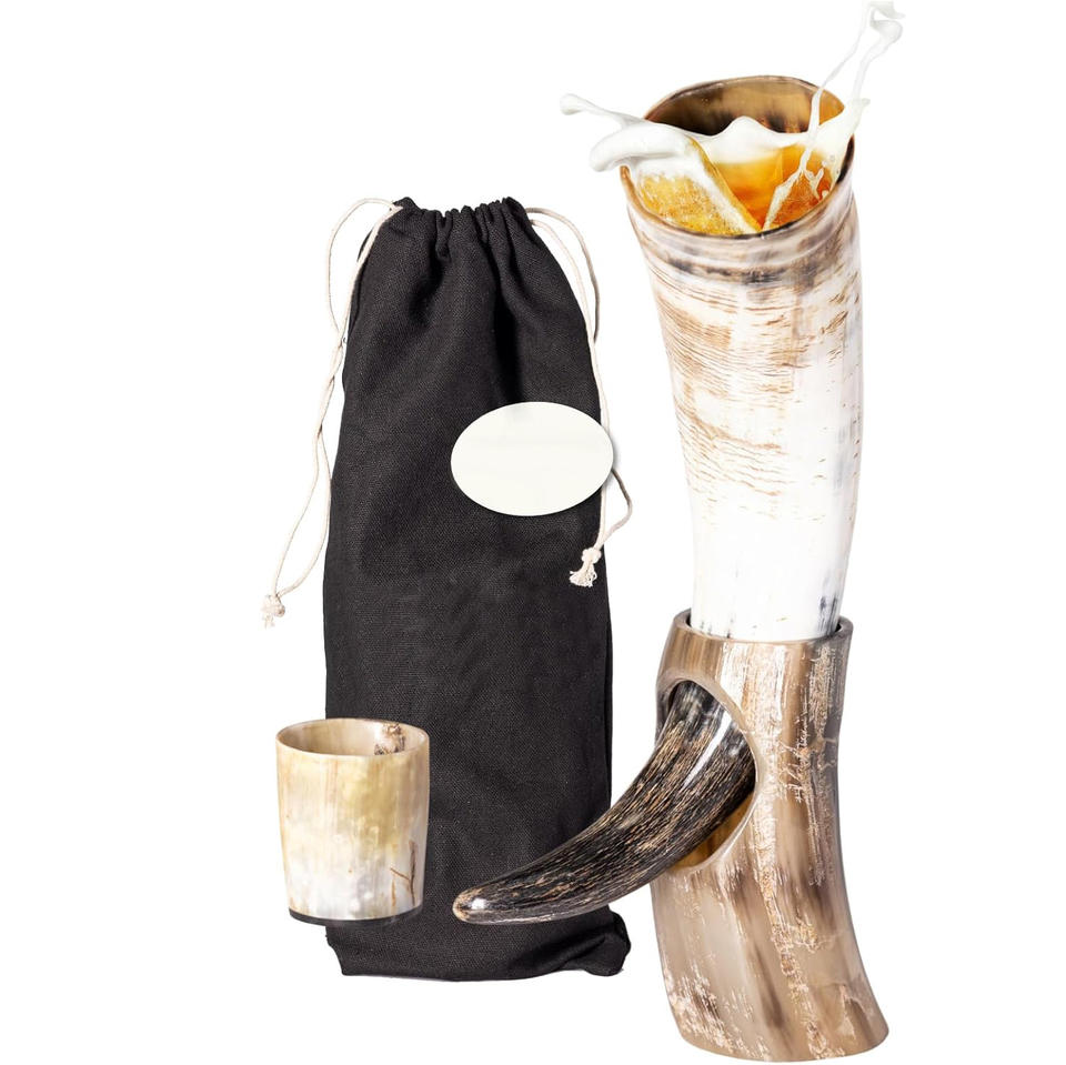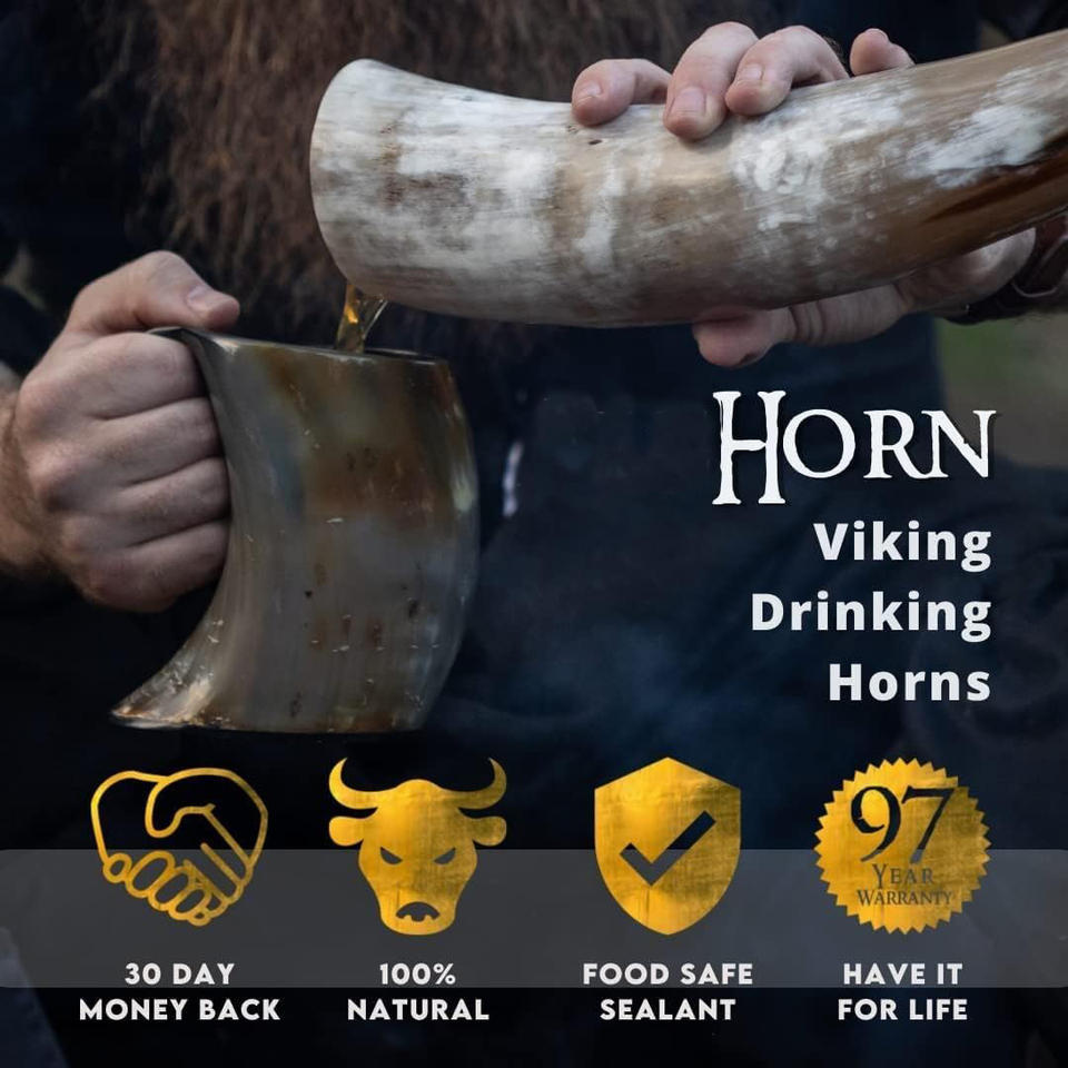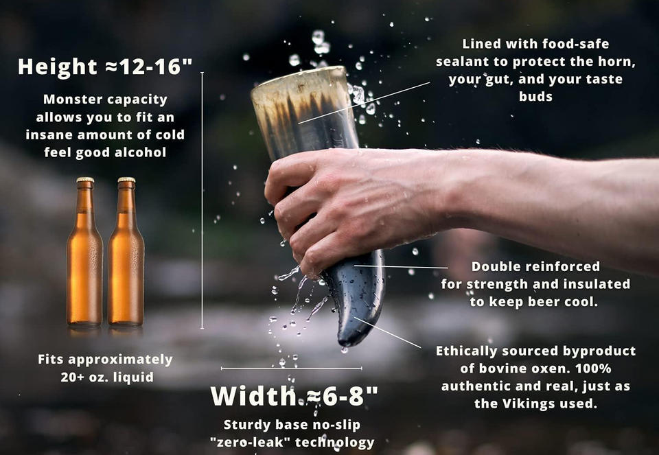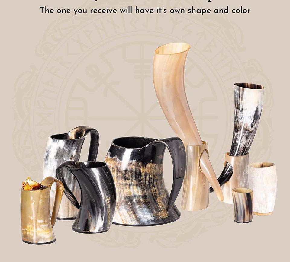 แก้วน้ำวีกิ้งแท้พร้อมขาตั้ง งานแฮนด์เมดคุณภาพสูง ทนทาน สีธรรมชาติ ขนาดสั่งทำได้ สำหรับเบียร์ มี้ด งานปาร์ตี้