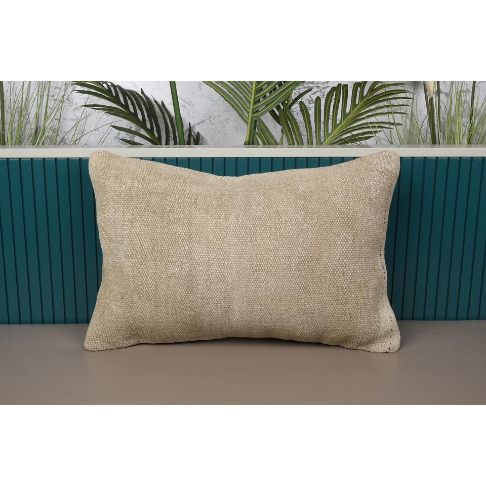 Authentic Vintage 16 X 24 Inch Beige & Green Wool Kilim Pillow Cover Hand Woven Jute Perfect Pop of Color for Kitchen Decor