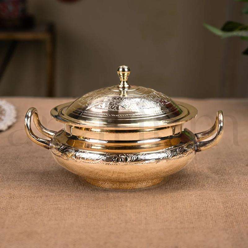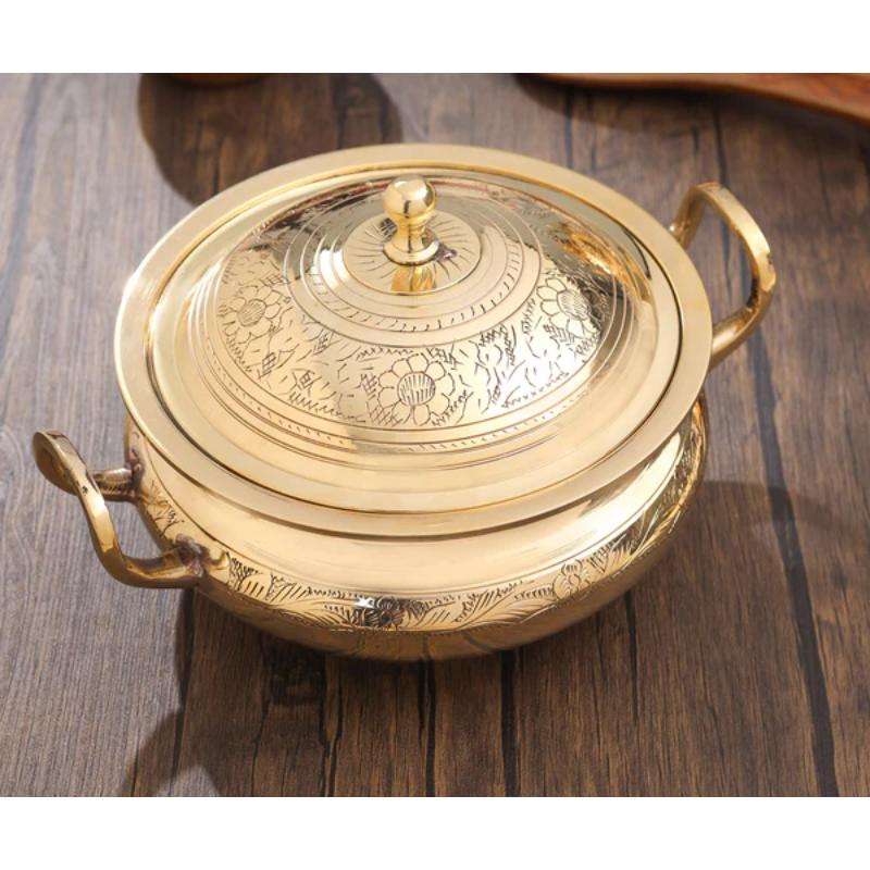 หม้อเสิร์ฟทองเหลืองอินเดียแท้เหมาะสำหรับร้านอาหารโรงแรมบริการจัดเลี้ยงอาหารบริการพูจาและห้องครัวในบ้าน