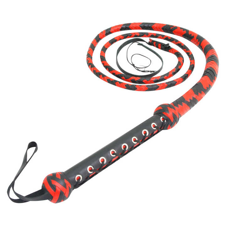 แส้หนังแท้ทรงยาวพร้อมด้ามจับหนังถัก สำหรับการแสดงโชว์ แส้คาวบอยสำหรับนักล่า