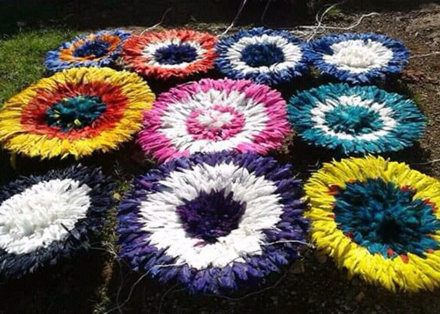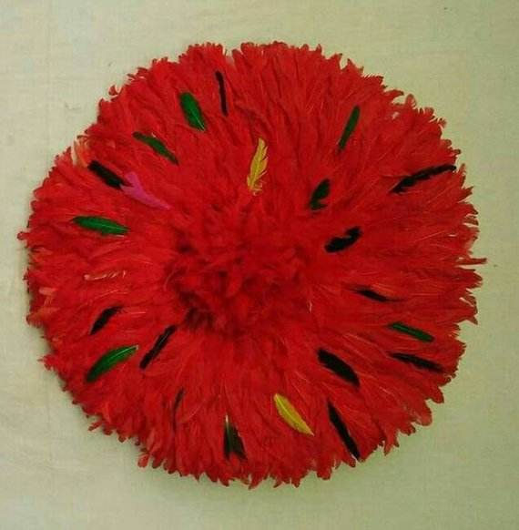 หมวก Juju Juju แบบถักด้วยมือของแท้ผ้าโพกศีรษะขนนกบามิล