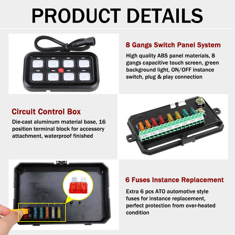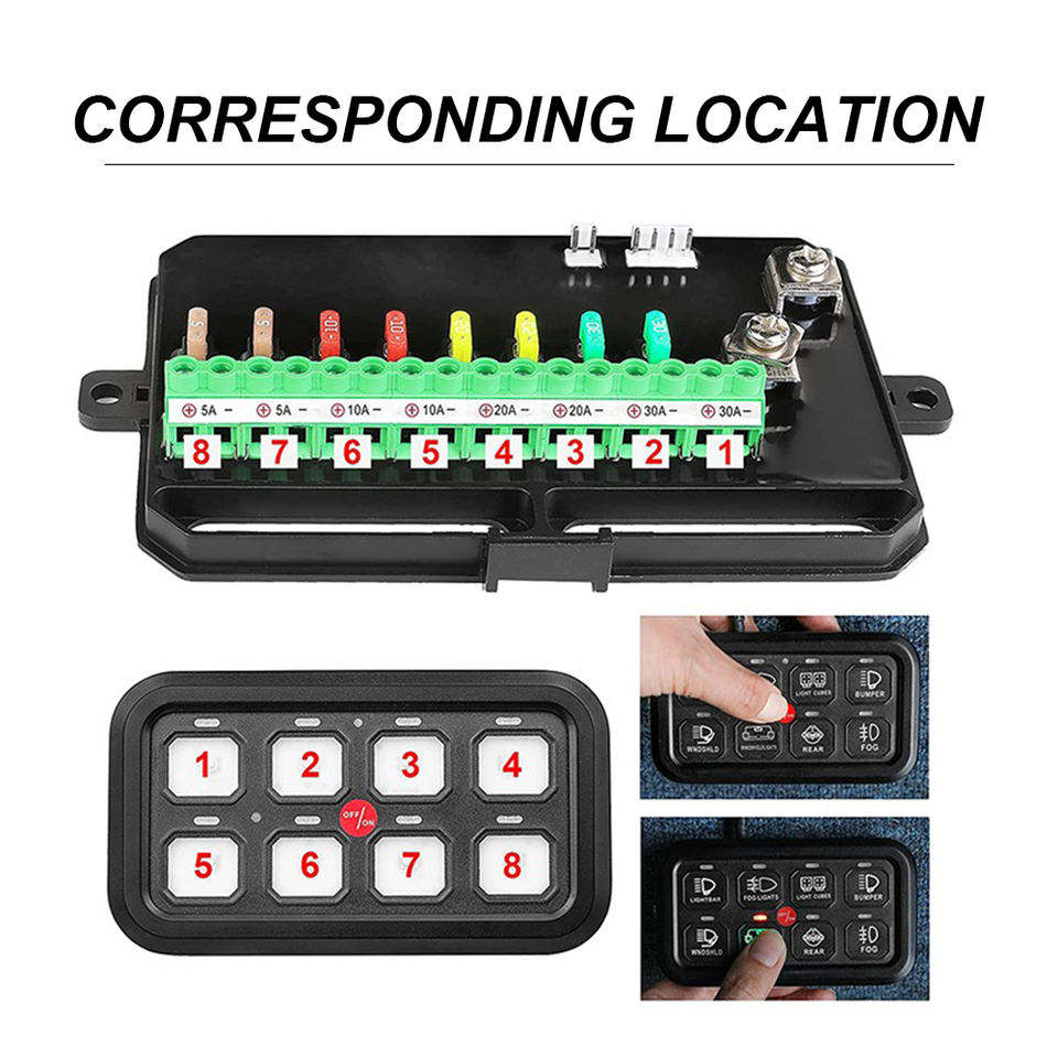 อุปกรณ์เสริมรถยนต์12V 24V 60A ฟิวส์รีเลย์กล่องสวิทช์ควบคุมแผงรีเลย์อิเล็กทรอนิกส์ระบบ8แก๊งสวิทช์แผงเปิด-ปิดสวิทช์ LED