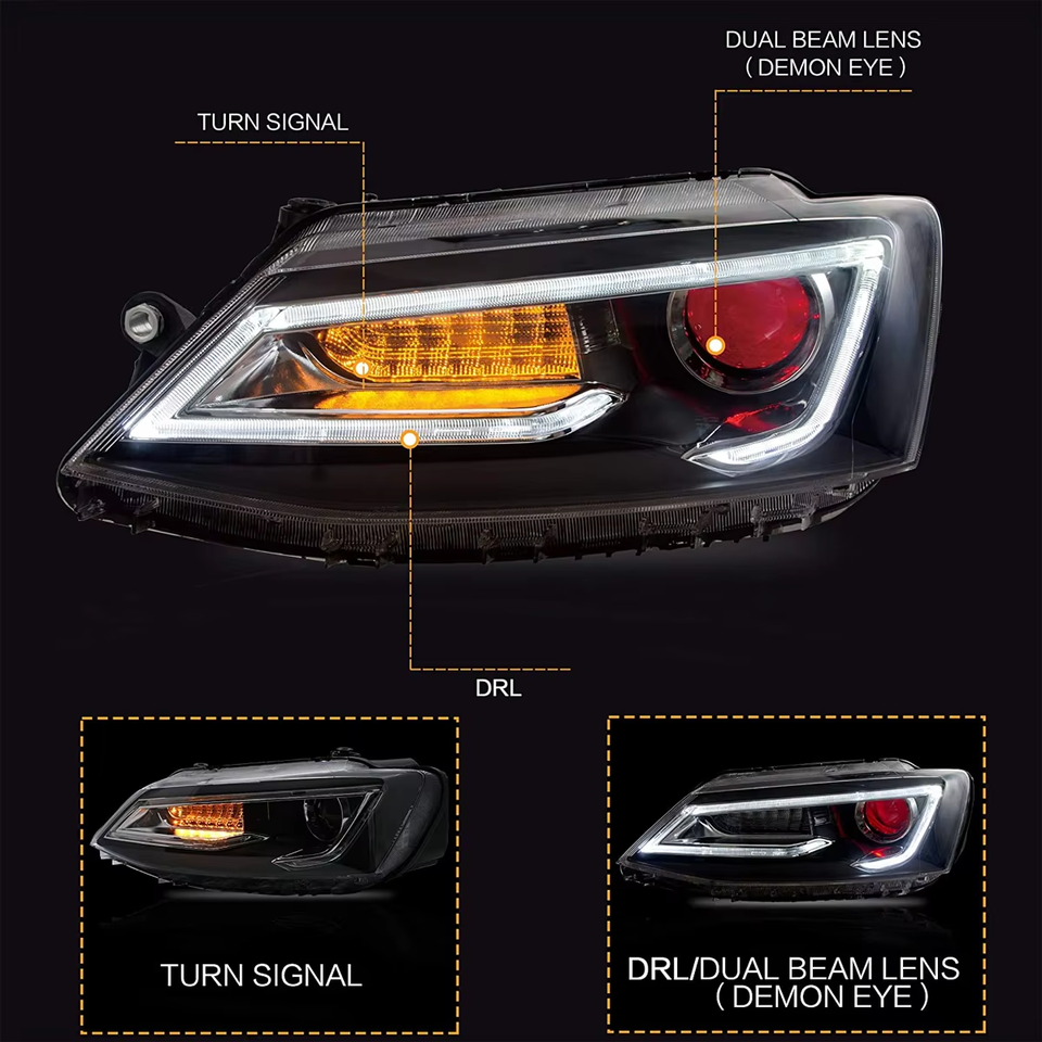 อุปกรณ์เสริมรถยนต์ไฟหน้า LED ไฟหน้าทรงปีศาจสำหรับ VW Volkswagen Polo Trendline/comfortline/Highline/BASE 2012-2018