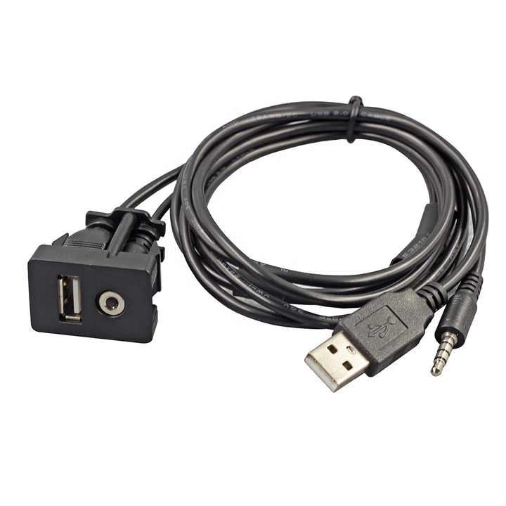 แจ็กเก็ต USB & AUX 3.5มม. สายสัญญาณเสียง USB แบบฟลัชเมาท์ USB สายสัญญาณเสียงสำหรับรถยนต์โตโยต้าอุปกรณ์เสริมรถยนต์แบบทำมือ