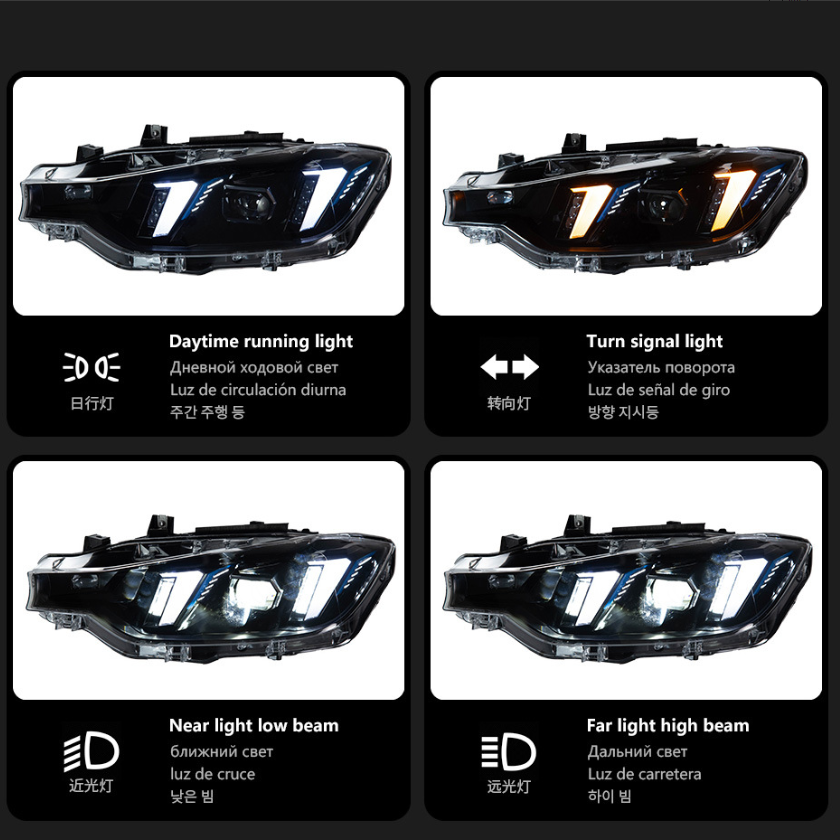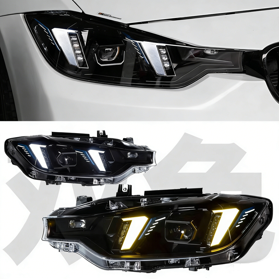 อุปกรณ์ตกแต่งรถยนต์ ไฟหน้าเลเซอร์ 12V รุ่นใหม่ 6000K สำหรับรถยนต์ซีรีส์ 3 รุ่น F30 F35 ปี 2013-18 แบบ Snake Eyes สไตล์สองสี สำหรับดัดแปลง