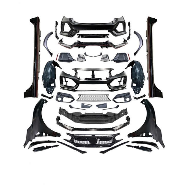 ชุดแต่งกันชนหน้ารถยนต์สำหรับ Civic ปี 2016-2021 รุ่นอัพเกรด Type-R พร้อมกันชนหน้า-หลัง สเกิร์ตข้าง และสปอยเลอร์