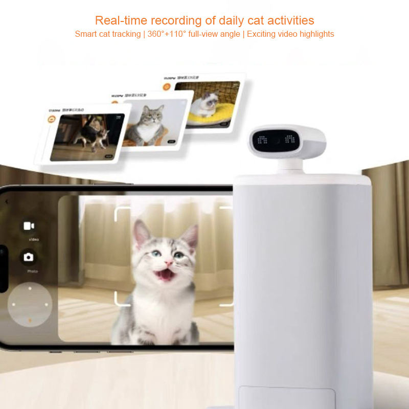 เครื่องให้อาหารแมวอัตโนมัติ1080P HD กล้องสัตว์เลี้ยงอัจฉริยะความจุ2.5L เป็นมิตรกับสิ่งแวดล้อมใช้แบตเตอรี่มองกลางคืนมองเห็น360