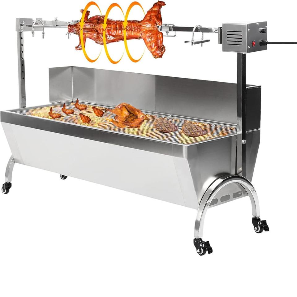 เครื่องย่างไก่แบบอัตโนมัติ ใช้ถ่าน สำหรับร้านอาหาร ย่างบาร์บีคิวกลางแจ้ง พร้อมที่เสียบเนื้อ