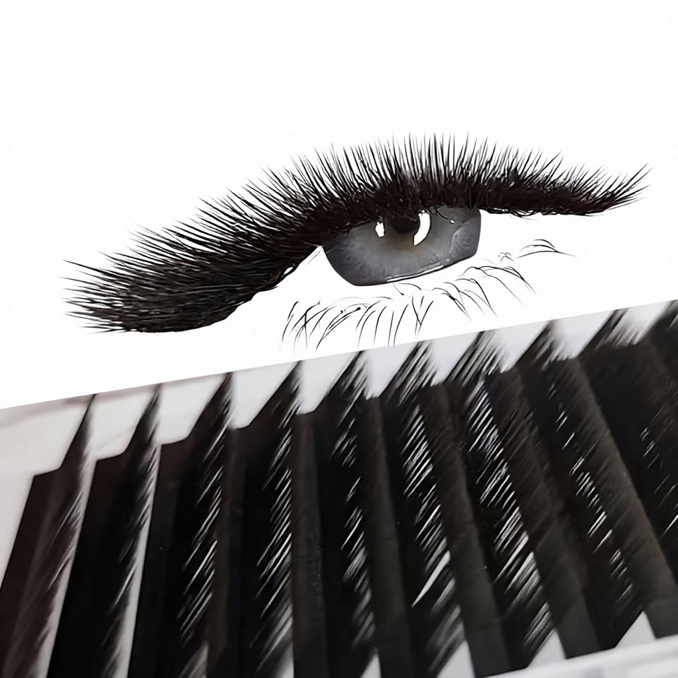 ขนตาปลอมแบบพัดอัตโนมัติ J Curl .03 ธรรมชาติ ทำมือ ง่ายต่อการต่อแบบพัด พรีเมียม แมตต์ สีดำด้านพิเศษ DRAGONLASH หลายแถว ปรับแต่งได้ ออกแบบฟรี