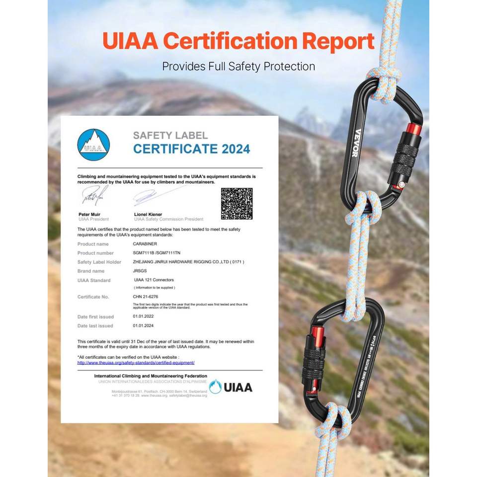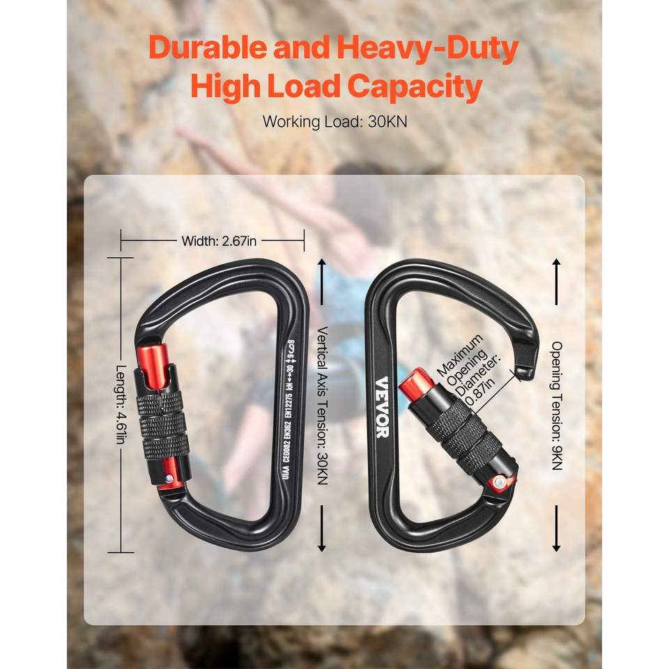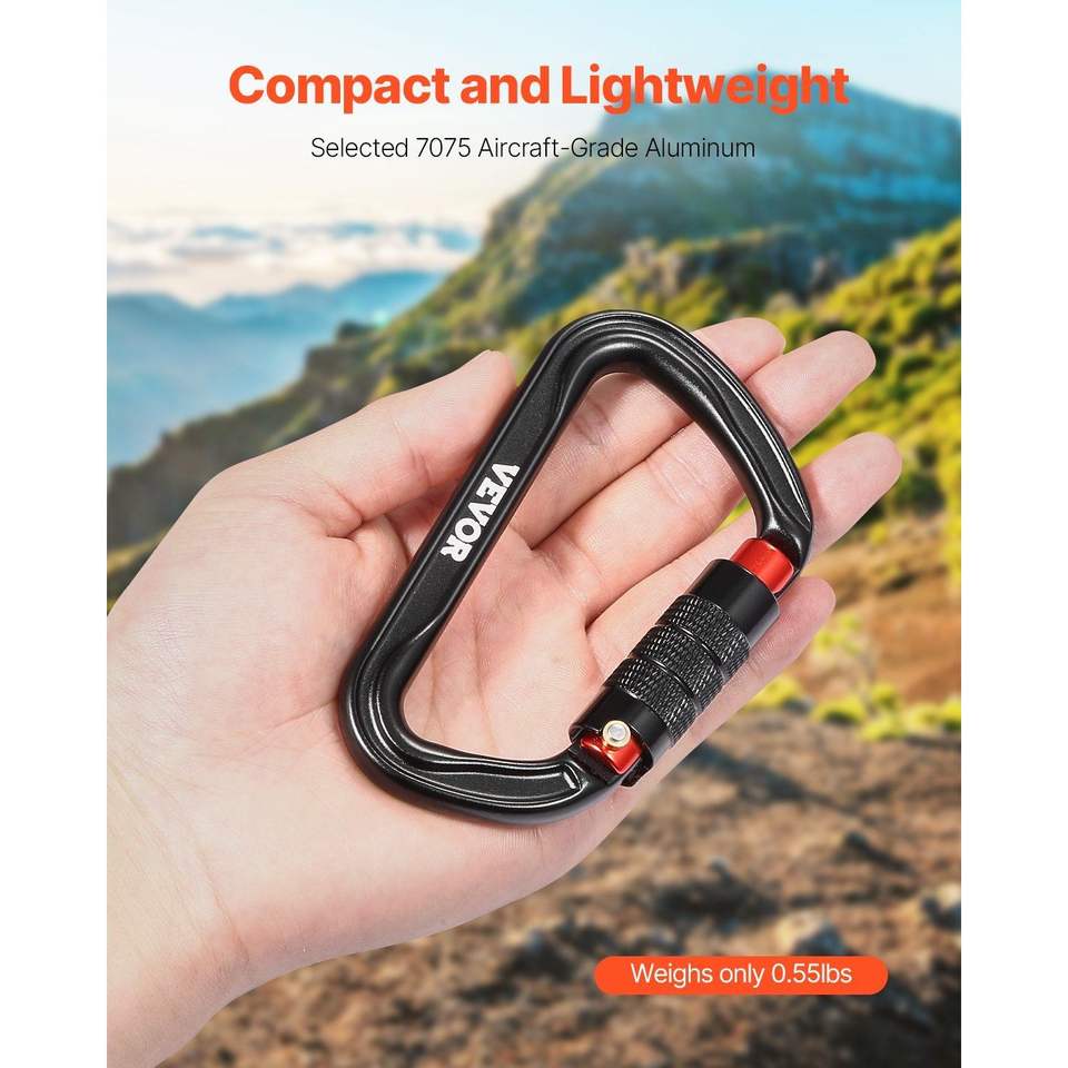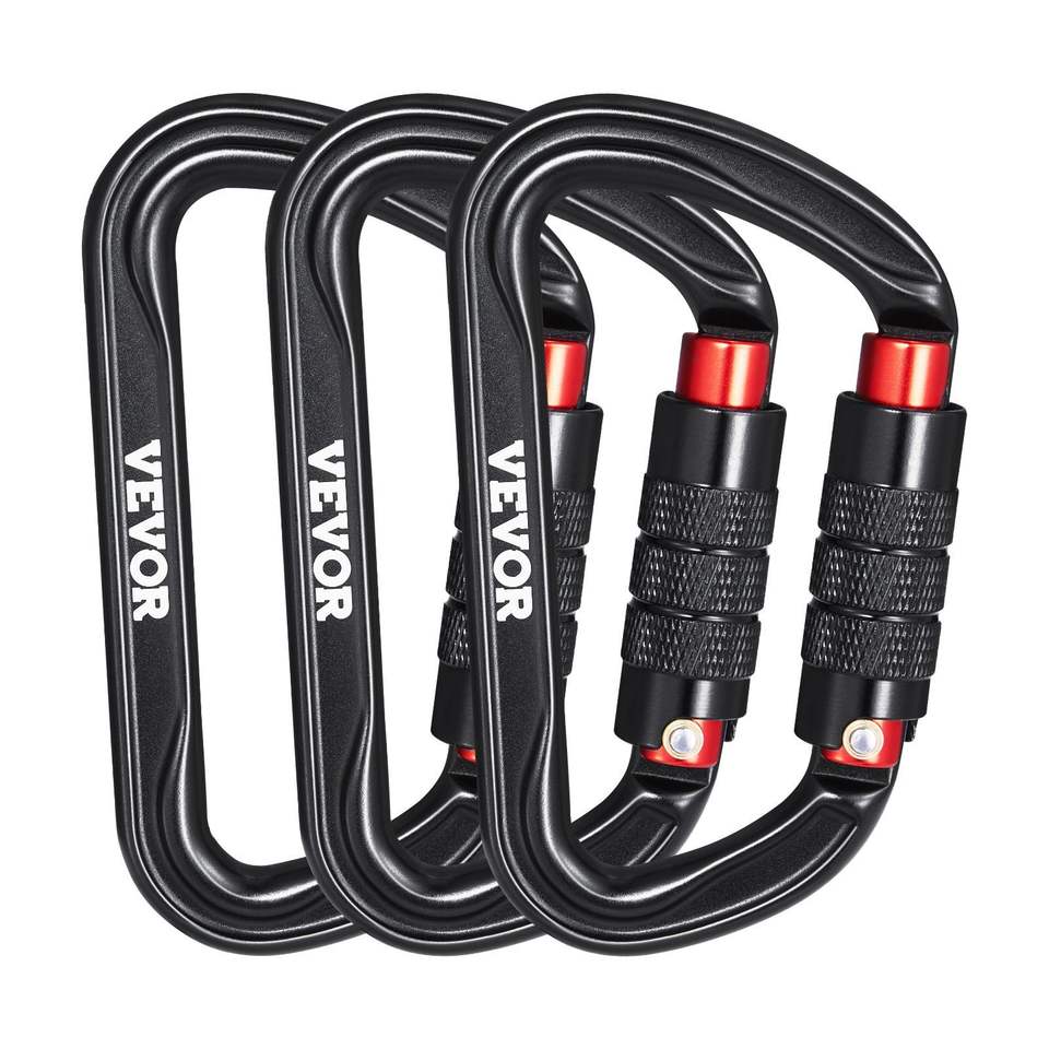 คาราไบเนอร์รูปตัว D แบบล็อคอัตโนมัติ สำหรับปีนเขา งานหนัก ระดับมืออาชีพ รับน้ำหนักได้ 30 KN/6744 ปอนด์ ความแข็งแรงแกนหมุน 3 ชิ้น