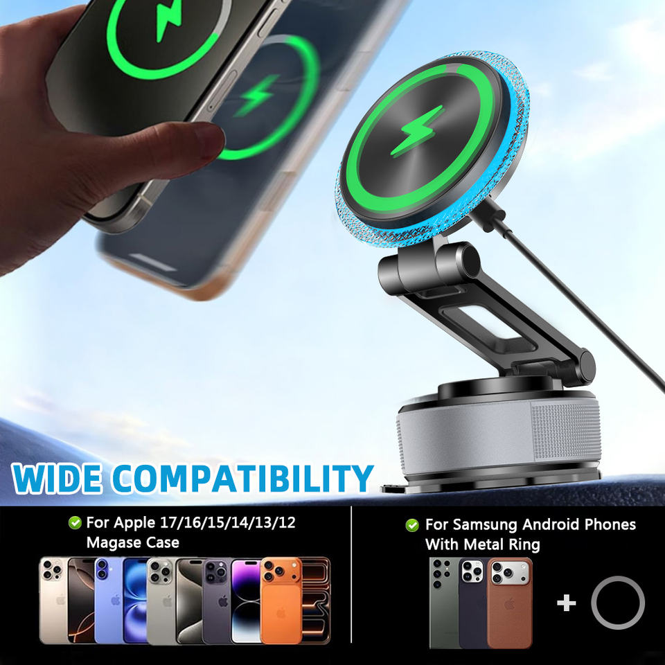 แท่นชาร์จไร้สายในรถยนต์ 2.0 พร้อมระบบล็อคอัตโนมัติ รองรับการชาร์จเร็ว 15W พร้อมแม่เหล็กแรงดูดสูง N52 สำหรับโทรศัพท์มือถือแบบ Type-C