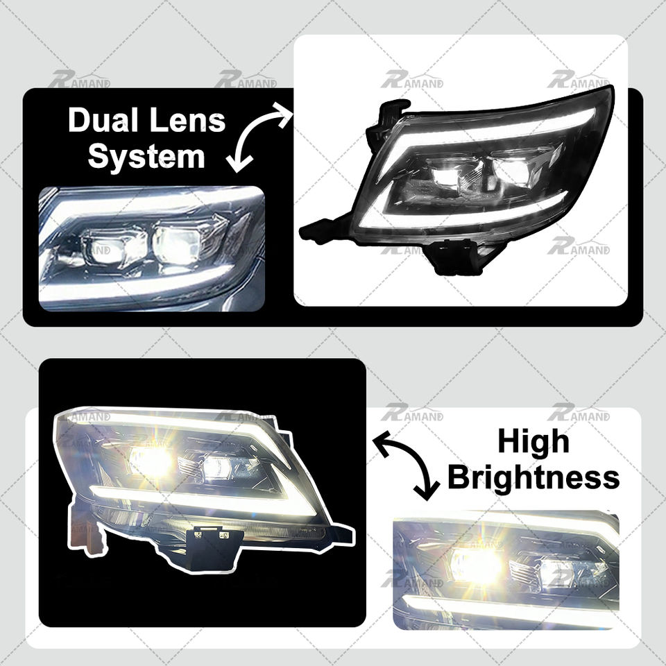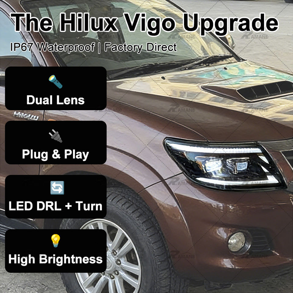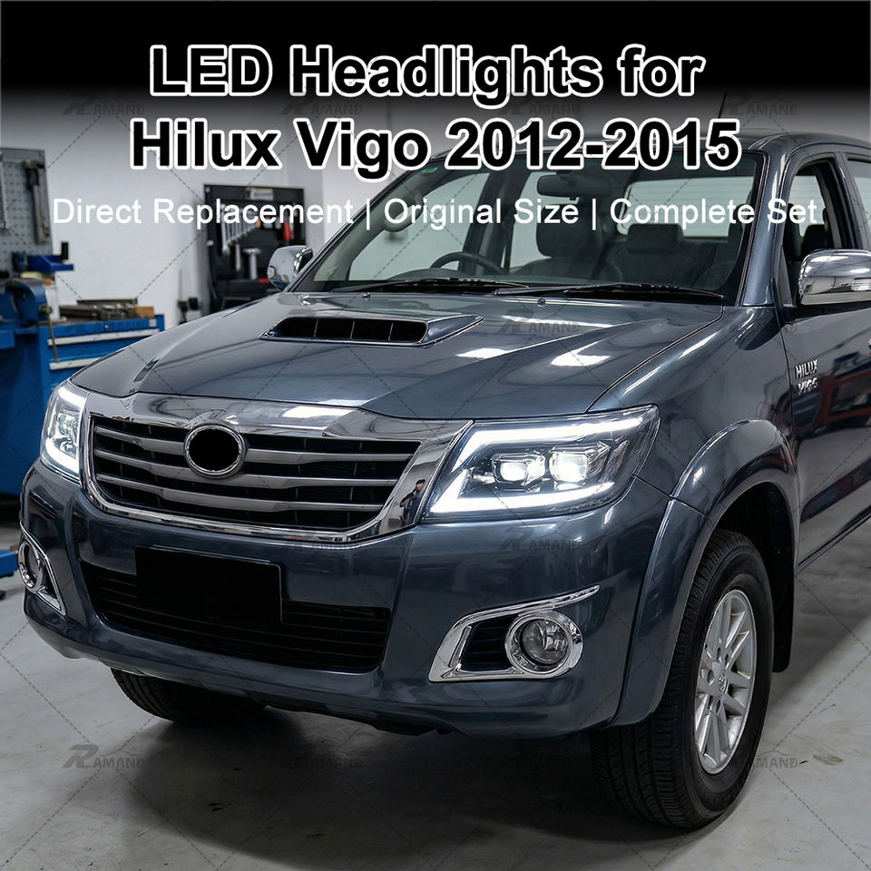 ไฟหน้ารถยนต์ทรงใหม่ 2 เลนส์ สำหรับ Hilux Vigo ปี 2012-2015 ไฟ DRL แบบ Full LED พร้อมอุปกรณ์เสริมไฟหน้า Vigo
