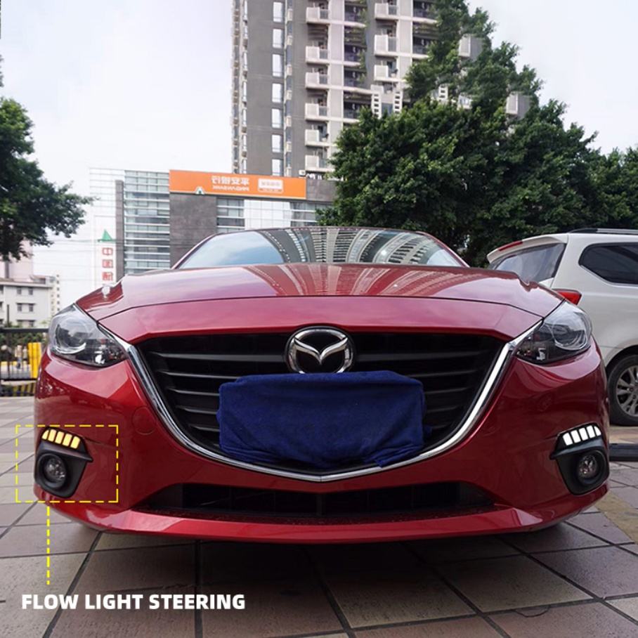 ไฟเดย์ไลท์อะไหล่รถยนต์ พร้อมไฟเลี้ยวสีเหลือง 1 ชุด ไฟเดย์ไลท์ LED สำหรับรถยนต์ Mazda 3 Axela ปี 2014 2015 2016