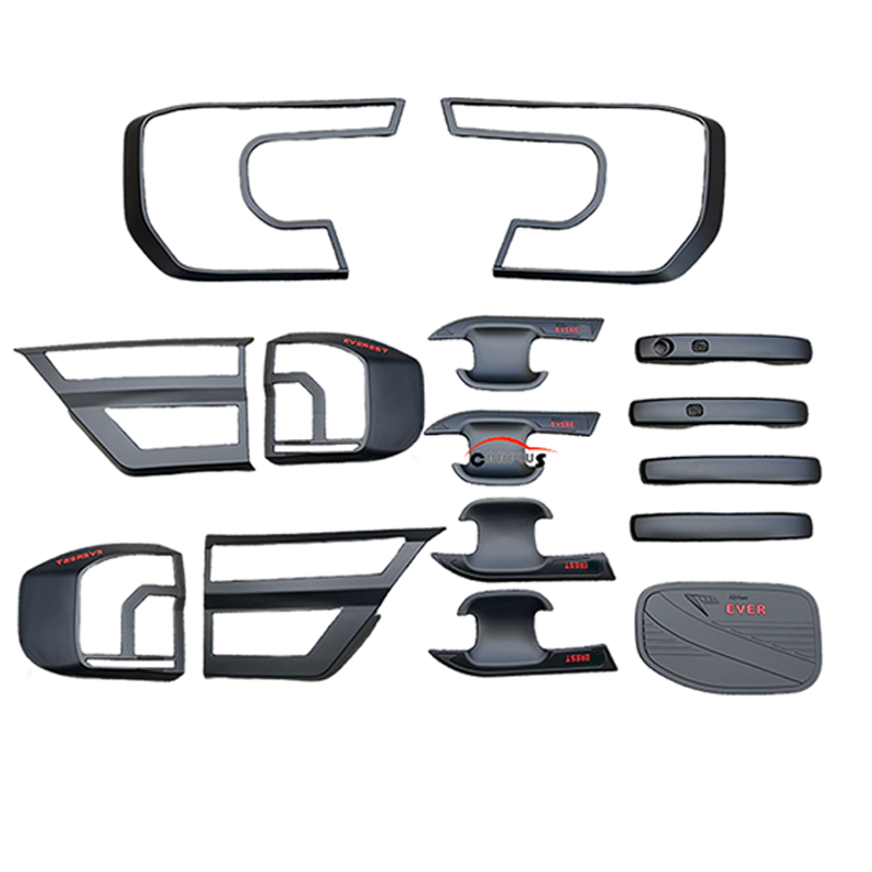 ชุดแต่งพลาสติกสีดำสำหรับฟอร์ด เอเวอร์เรสต์ ปี 2023 ประกอบด้วยฝาครอบไฟหน้า ฝาครอบมือจับประตู และชุดแต่งครอบโคมไฟ