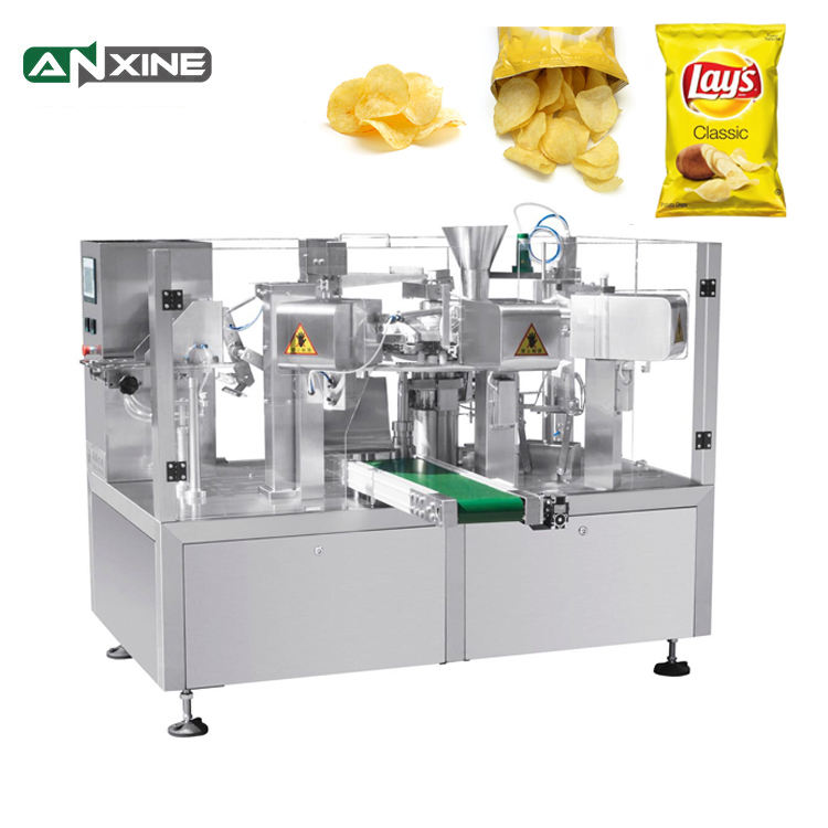 Auto Puffed Food Pouch Pack Potato Chips Shrimp Crackers Onion Rings Crispy Corner Popcorn Bag Packing Machine With Nitrogen
