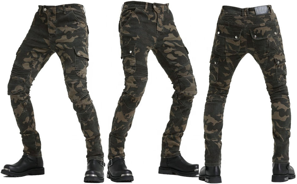กางเกงยีนส์สำหรับนักแข่งรถจักรยานยนต์ของผู้ชายมีคุณสมบัติป้องกันลายพรางชุดกีฬานักขี่จักรยานเทคนิคการพิมพ์บริการ OEM