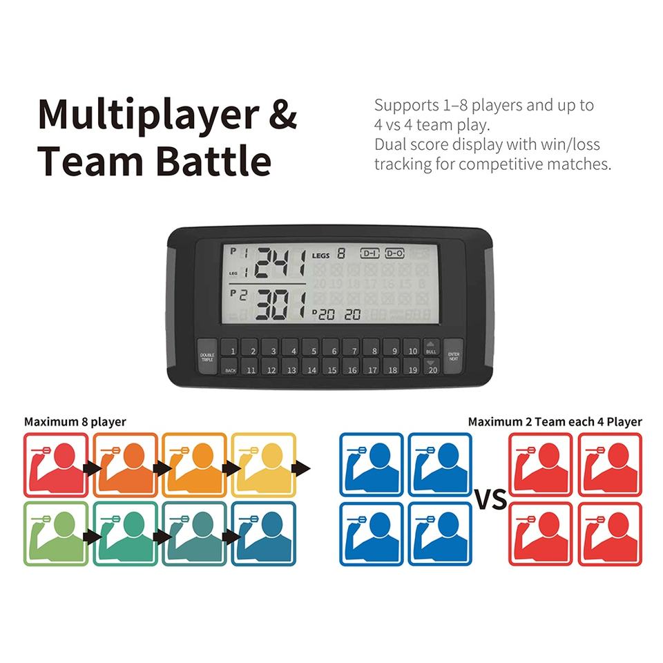 ระบบจับคะแนนอัตโนมัติสำหรับเกมปาลูกดอก พร้อมแผงสีขาวดำ จอ LCD ความคมชัดสูง และปุ่มใช้งานง่ายสำหรับผู้เล่นหลายคน