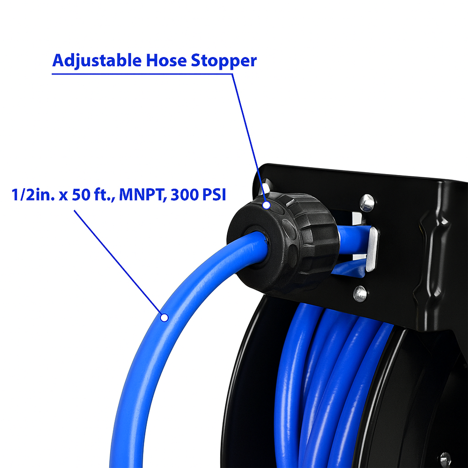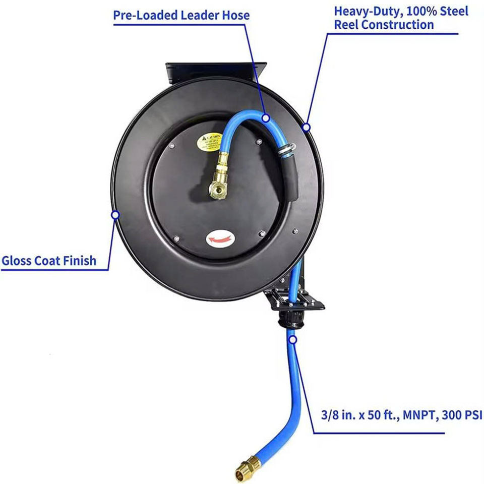 สายลมอัดแบบม้วนเก็บอัตโนมัติ AutoRewind ขนาด 1/2 นิ้ว x 50 ฟุต, แรงดัน 300 PSI พร้อมระบบสปริงม้วนเก็บอัตโนมัติ GAPGAR014