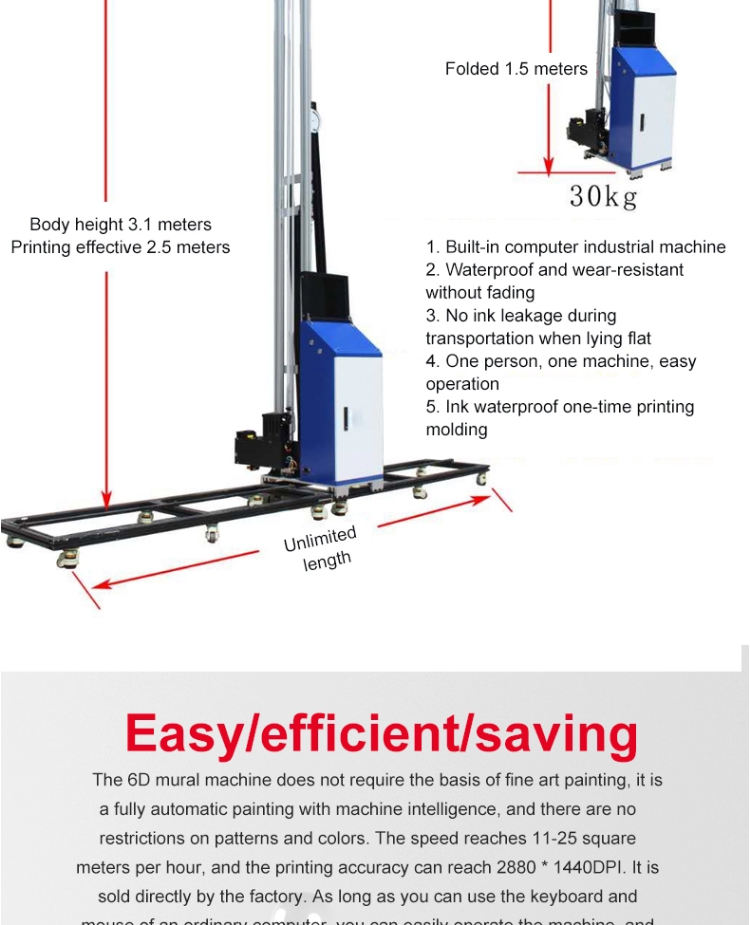 เครื่องพิมพ์อิงค์เจ็ทแนวตั้งอัตโนมัติ 2.5 เมตร แบบสเตอริโอ ใช้หมึกยูวี พิมพ์ลงบนผนังโดยตรง เครื่องพิมพ์อิงค์เจ็ท 3 มิติ สำหรับงานพิมพ์ภาพจิตรกรรมฝาผนัง