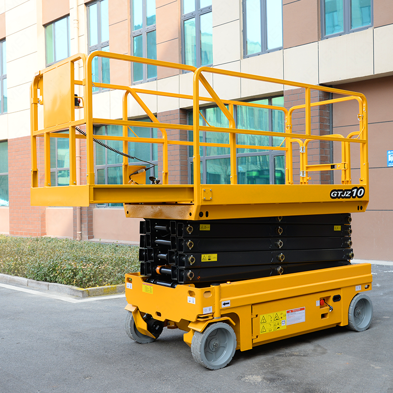รถเข็นยกกรรไกรระบบไฮดรอลิกขนาด4เมตรแบบอัตโนมัติรับน้ำหนักได้300กก. โต๊ะยกไฟฟ้าสแตนเลสสำหรับใช้ในบ้าน