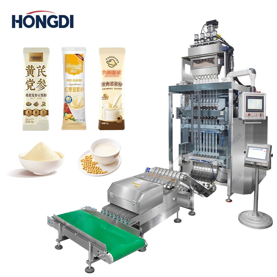 เครื่องบรรจุผงแบบอัตโนมัติ 8 ช่อง พร้อมระบบปิดผนึกด้านหลัง สำหรับบรรจุถุงและซอง ความแม่นยำสูง ใช้งานง่าย เกรดอาหาร