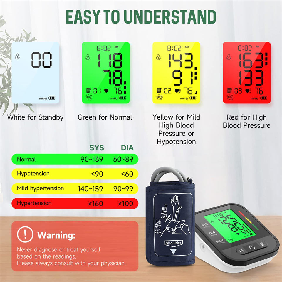 เครื่องวัดความดันโลหิตอัตโนมัติแบบแขน เครื่องวัดความดันโลหิตที่ต้นแขนสำหรับใช้ในบ้าน เครื่องวัดความดันโลหิตดิจิตอลอัจฉริยะสำหรับการตรวจสุขภาพ
