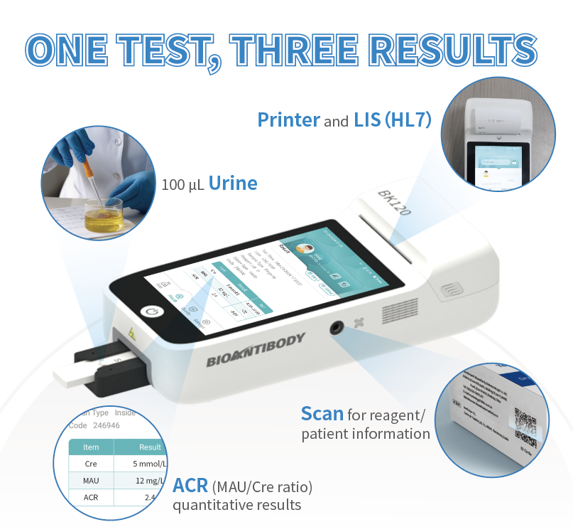 เครื่องวิเคราะห์อิมมูโนแอสเซย์ทางชีวเคมีอัตโนมัติสำหรับการทดสอบ glu/HBA1C CRE/Mau/Alt FT3 FT4 B12วิตามินด้วยเครื่องพิมพ์ด้านใน