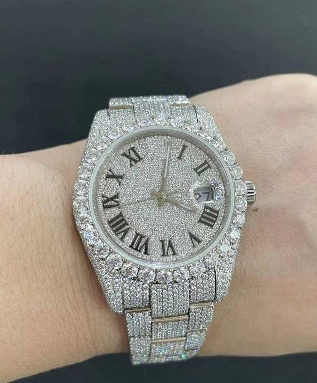 นาฬิกาเพชรแบบอัตโนมัติ VVS Moissanite นาฬิกาข้อมือกลไกสุดเก๋นาฬิกาเพชรหรูหราเครื่องประดับฮิปฮอปสำหรับผู้ชาย