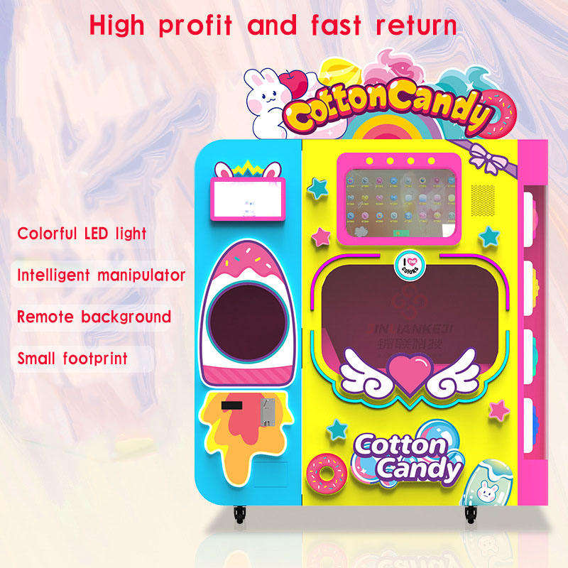 เครื่องทำลูกกวาดแบบอัตโนมัติเครื่องหยอดเหรียญห้างสรรพสินค้าเครื่องทำขนมสายไหมอัจฉริยะสำหรับสวนสนุก