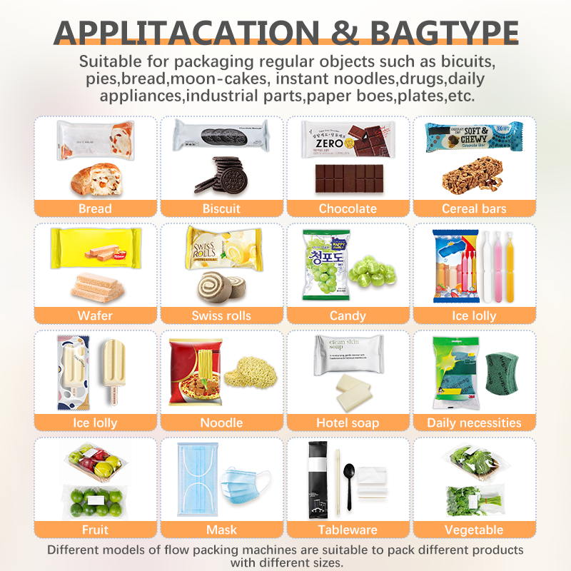 เครื่องห่ออาหารอัตโนมัติเครื่องห่อขนมหมอนคุกกี้ขนมปังช็อคโกแลต