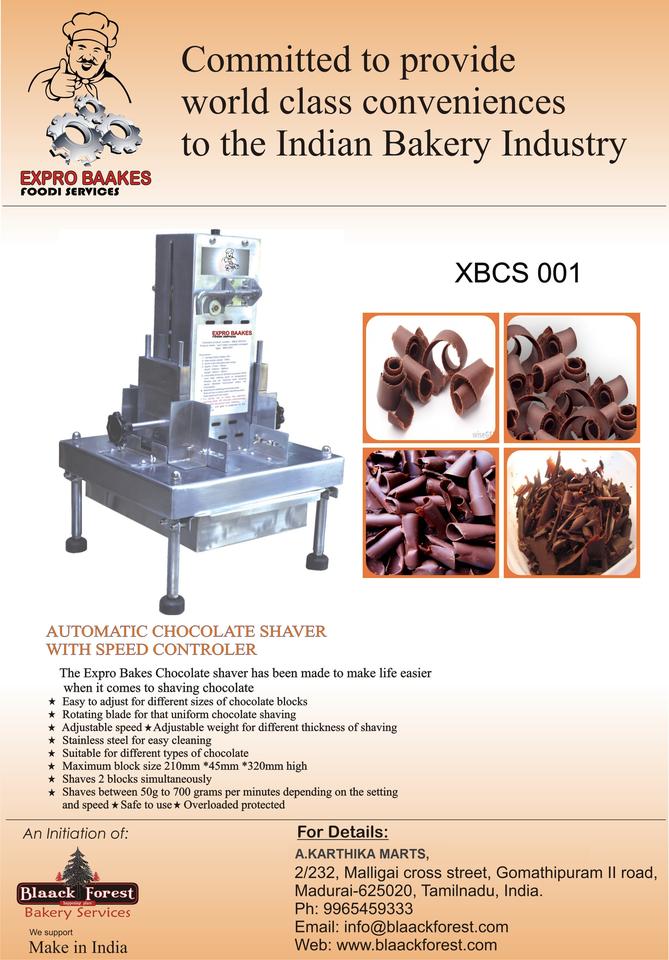 เครื่องจักรฟังก์ชั่น:Fully automated chocolate shaving process.